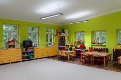 • pięć nowocześnie urządzonych sal zabaw, wyposażonych w sprzęt, kąciki zainteresowań, pomoce dydaktyczne i zabawki,